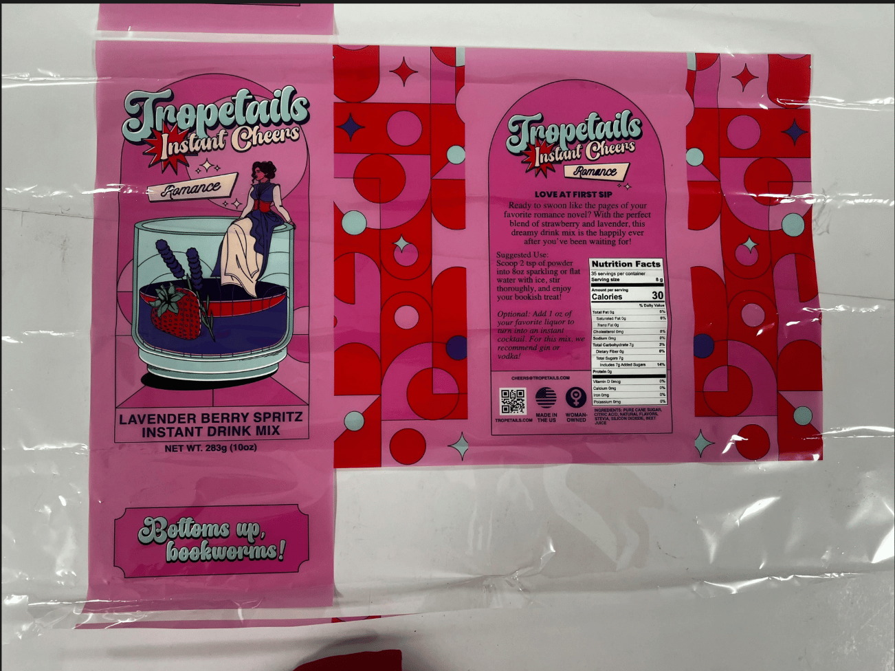 LOOK AT THIS!!! It’s the first sample I got from my bag manufacturer of the flat lay film (this is the first step for bag printing, then they fold it all together and heat press the edges to make a complete bag—it’s a pretty cool process) for the romance bag! It’s so shiny and oh so vibrant! I have absolutely zero idea what I’m going to do with 1500 10oz bags in my apartment, but at least they will look so pretty when they are taking up every single square foot of my living space 😊