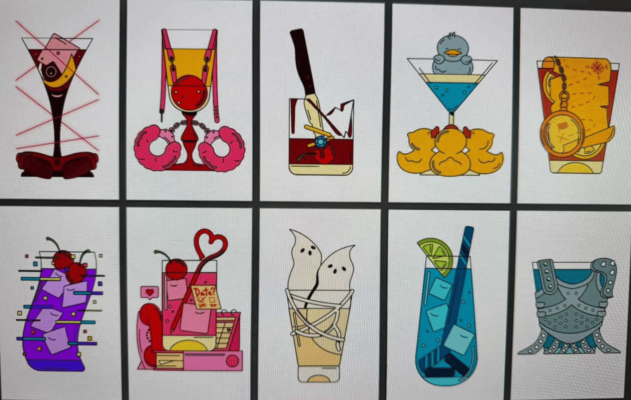 Since I'm thinking about pub drinks and cozy vibes, it feels like the perfect time to show you these... Check out these first 10 entirely new Tropetails designs! These will be going into my next installment of the Tropetails series... Tropetails: Another Round. Yup, that means a whole brand new book of trope and literary theme inspired cocktail and mocktail recipes based on 50 entirely new tropes!!! I'm so so soooo excited to share this with you guys at some point this year. But here's a sneak peek of the first 10.... can you guess which tropes or themes these are?? 👀