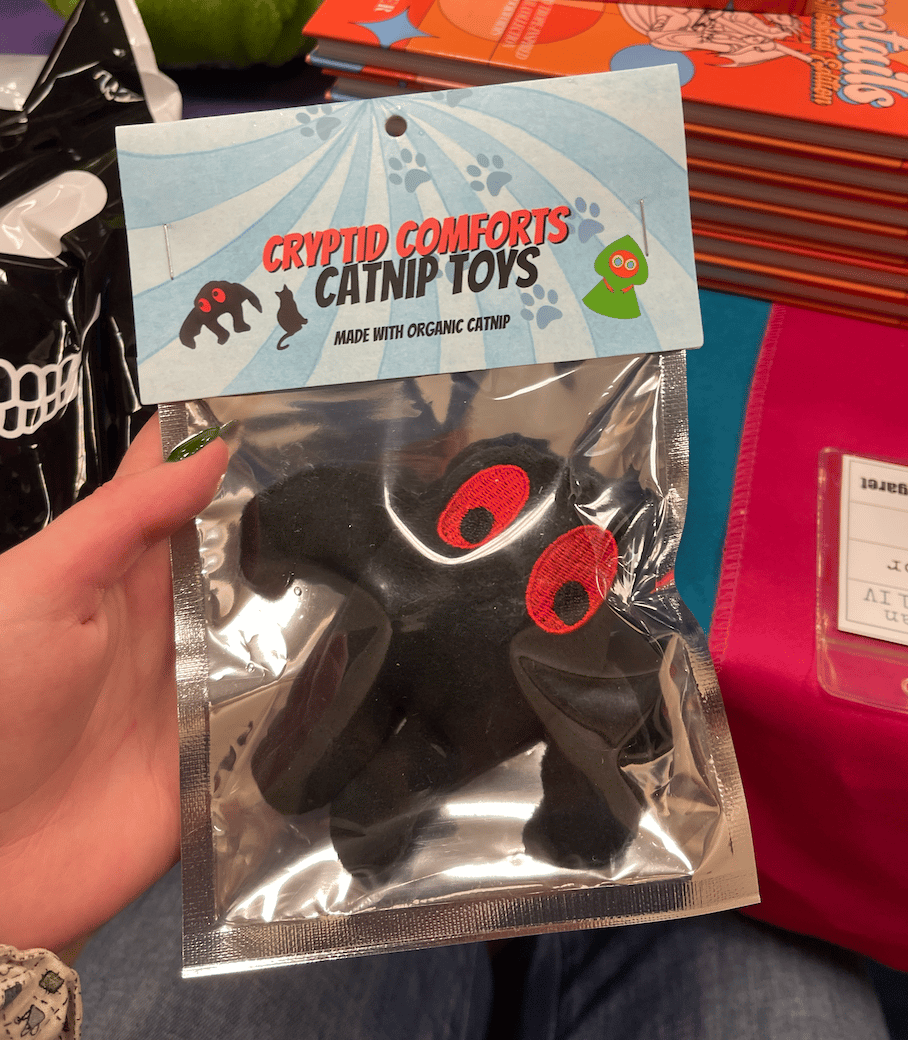 My human attended a very interesting event the other day called the Loveland Frogman Festival. Apparently it was one of her most successful events to the date, so she bought me this fun new mothman toy as a prize for her success! It’s filled with catnip and I cannot wait to bat it under the couch with the rest of my toys!!
